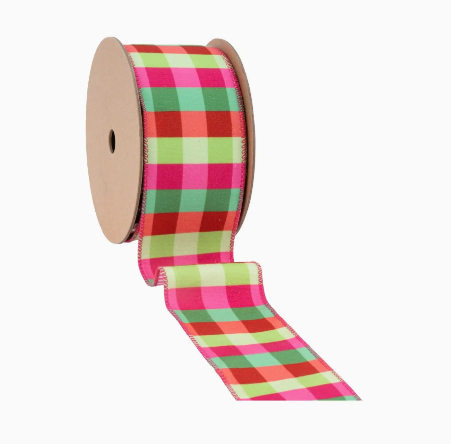 Velvet Ribbon Florescent Plaid with Stripe Backing 10yd